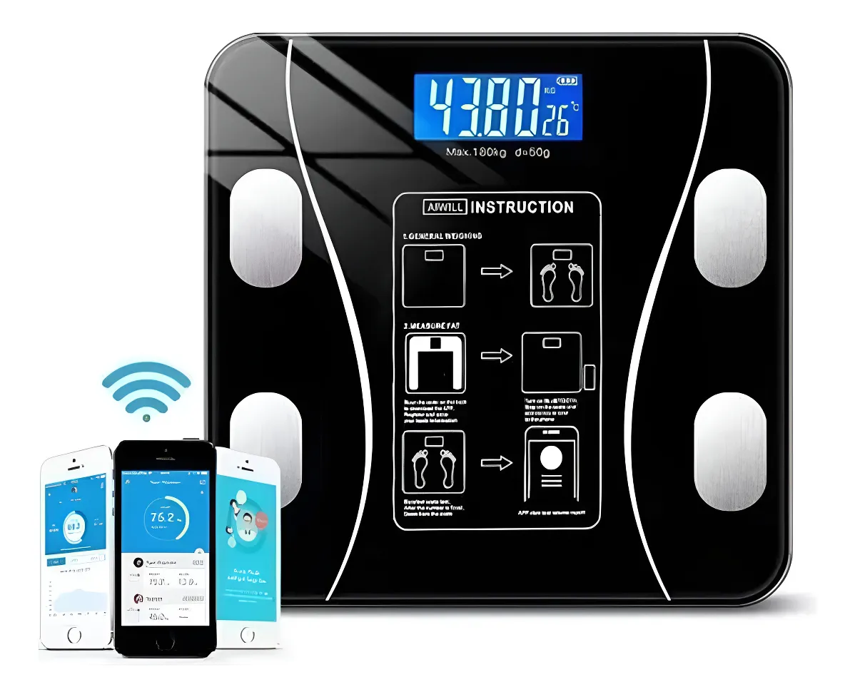 Balanza Pesa Baño 180kg Inteligente Bluetooth App Smart Negro
