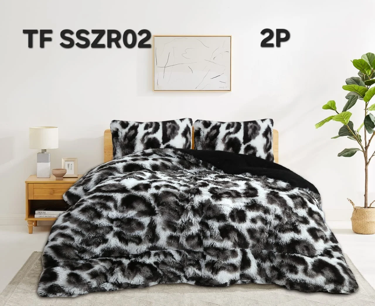 Tamaño: 2 plazas Materiales: Poliéster, Peludo Incluye fundas para almohadas