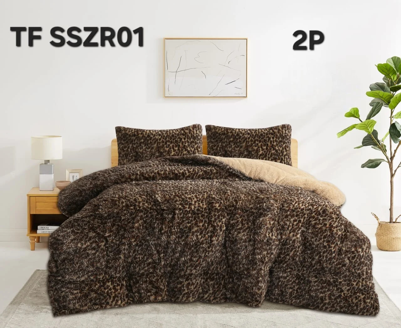 Tamaño: 2 plazas Materiales: Poliéster, Peludo Incluye fundas para almohadas