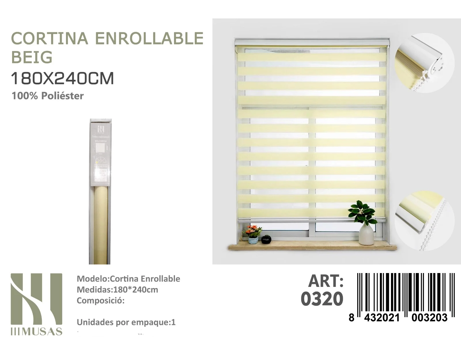 Cortina Roller Duo Lisa 180cm x 240cm Color Beige 0320Disponibilidad: 3 disponibles