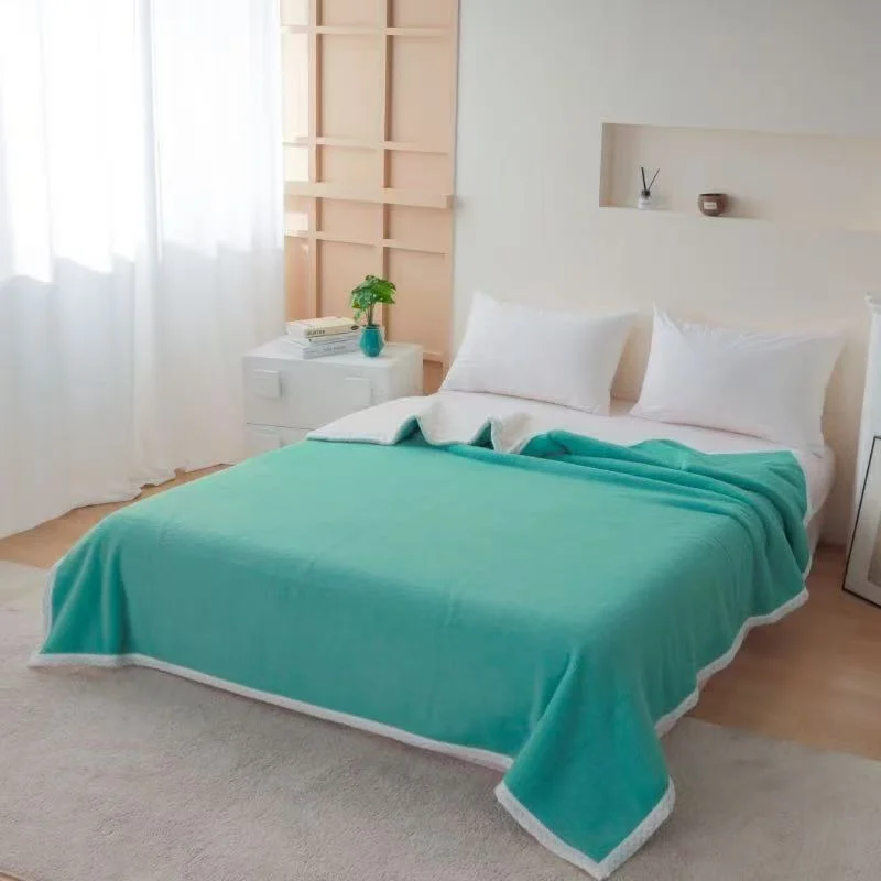 Frazada Manta Lisa Premium 2 Plazas Color Verde Agua