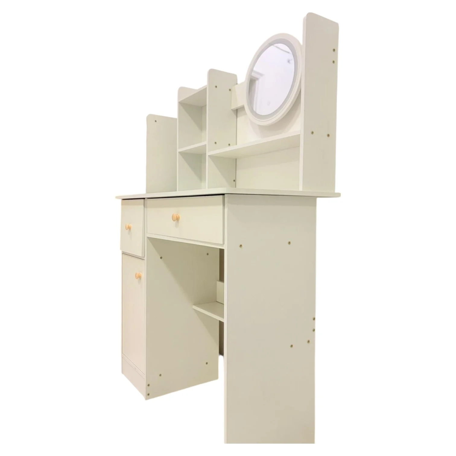 Este tocador tiene una iluminación muy brillante con tres niveles diferentes de luminosidad de maquillaje para el maquillaje de la mañana, el maquillaje de la tarde y el cuidado de la piel por la noche, perfecto para el maquillaje en casa, en el salón o en el lugar de trabajo.